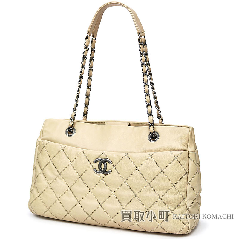 【最大3万円OFFクーポン! 6/15〜】【美品】シャネル 【CHANEL】ココマーク キルティング チェーンショルダー トートバッグ ベージュ カーフスキン マトラッセ #18 CHAIN BAG 【Aランク】【中古】【中古】