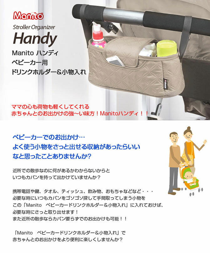 (赤が青に見える等、明らかに色が異なっていた場合は弊社負担の返品交換の対象となります)Manito ハンディ ベビーカー小物入れ&ドリンクホルダー ベビーカーのハンドルの種類を選ばないで装着できる便利なベビーカー専用小物入れ。